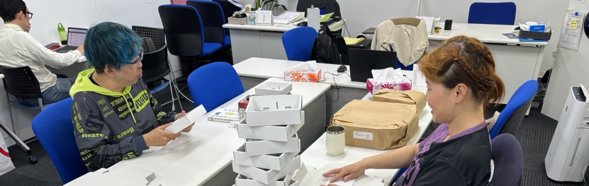 当事業所では、企業からの委託を受けて商品の梱包やラベル貼りなどの軽作業を行っています。手順がわかりやすく、座ってできる作業が多いため、体への負担も少なく安心して取り組めます。